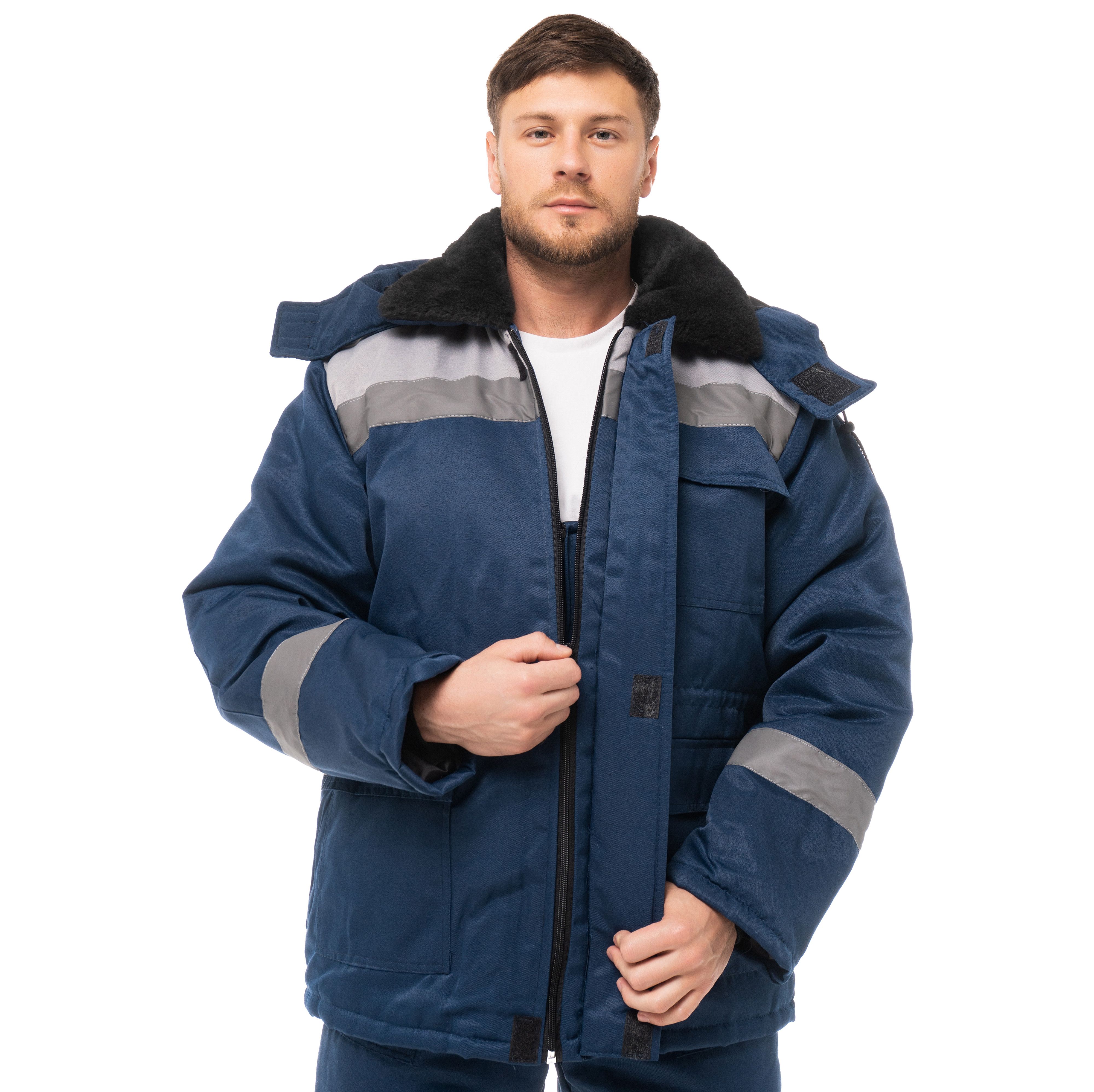 Комплект состоит из тёплой куртки и полукомбинезона. Костюм рассчитан на эксплуатацию в морозы на открытом воздухе и в неотапливаемых помещениях. Ткань устойчива к механическим воздействиям. Куртка отличается удлинённым кроем, хорошо защищает поясницу от продувания. Застёгивается на молнию с удобным большим язычком. Центральная застёжка защищена накладным ветрозащитным клапаном. В верхней части расположены косые врезные карманы. В нижней – вместительные накладные с клапаном на кнопках. Полукомбинезон оснащён эластичной вставкой в талии. Лямки регулируются пряжками по длине.